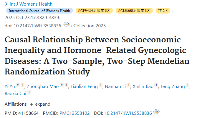 2025年10月23日,中國學者在《Int J Womens Health》發(fā)表一項孟德爾隨機化(MR)研究,通過MR方法,探討社會經濟地位(SES)與多種激素相關的婦科疾病的因果關系,并利用遺傳學數(shù)據(jù),探討教育、收入和職業(yè)等社會經濟因素與女性激素相關疾病之間的因果關系及其潛在中介。